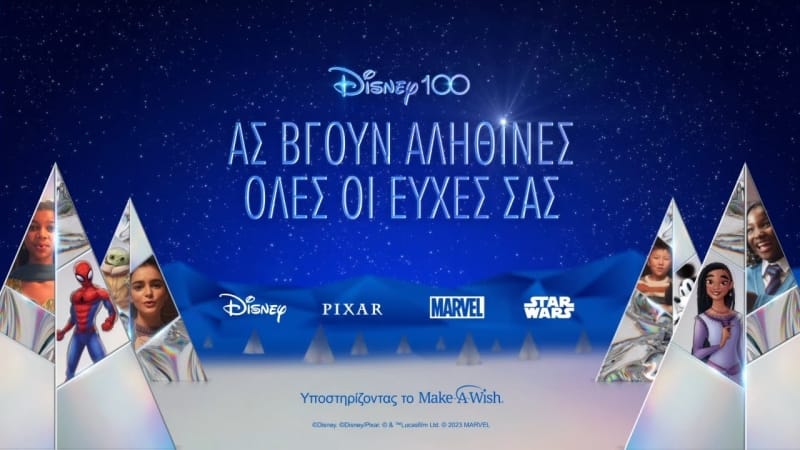 Η Disney, για την 100η της επέτειο, λάνσαρε σήμερα τη νέα καμπάνια των Χριστουγέννων, με τίτλο «Ας βγουν αληθινές όλες οι ΕΥΧΕΣ σας», η οποία εστιάζει στη δύναμη των ευχών. Η καμπάνια περιλαμβάνει την πρώτη εορταστική live-action διαφήμιση, με τίτλο «Μία Disney ΕΥΧΗ για τις Γιορτές», η οποία αντλεί έμπνευση από την πολυαναμενόμενη ταινία των Walt Disney Animation Studios, «Ευχή», που σύντομα θα κυκλοφορήσει στους κινηματογράφους σε περισσότερες από 50 χώρες.